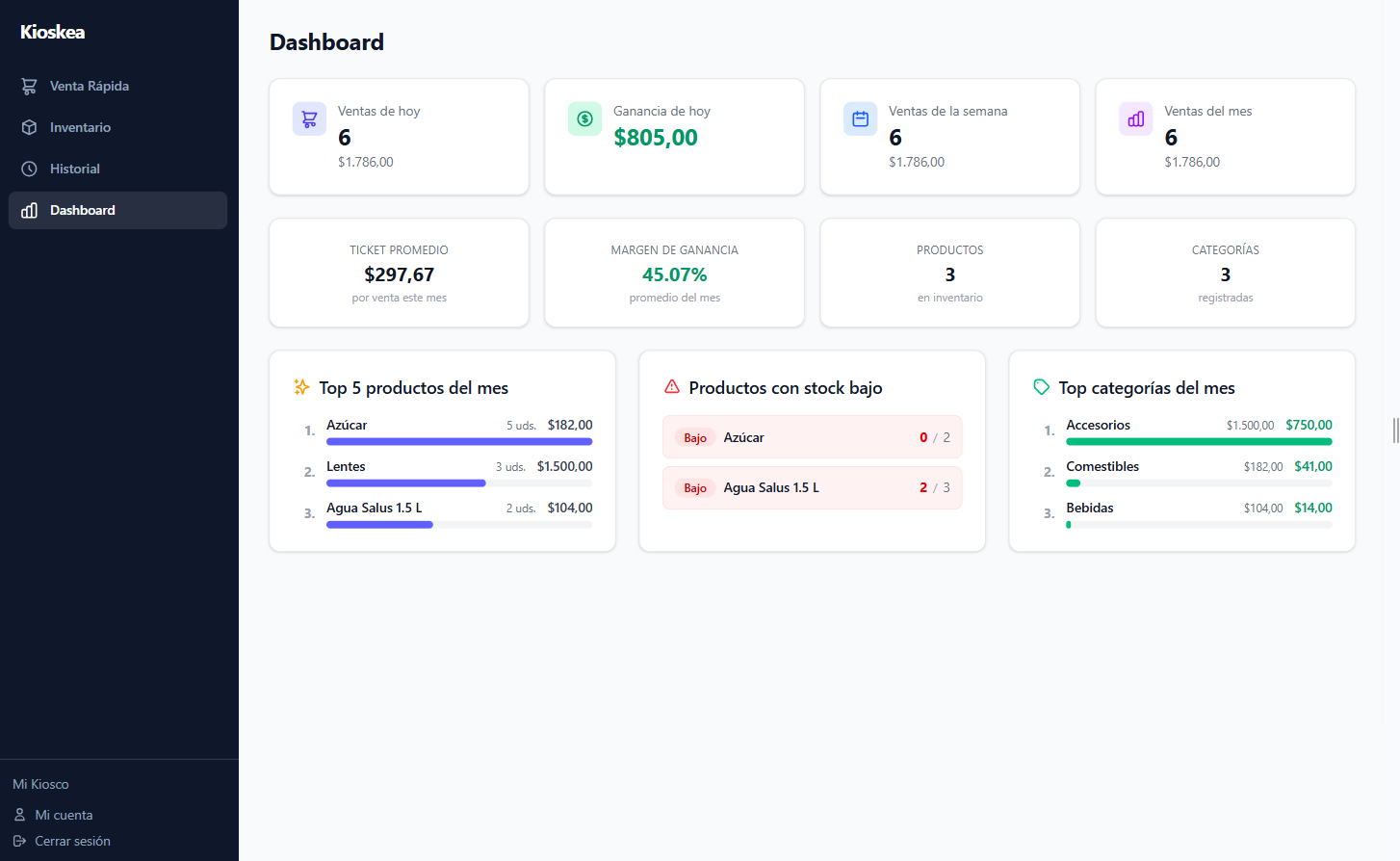 Asi de simple se ve gestionar tu negocio con Kioskea.